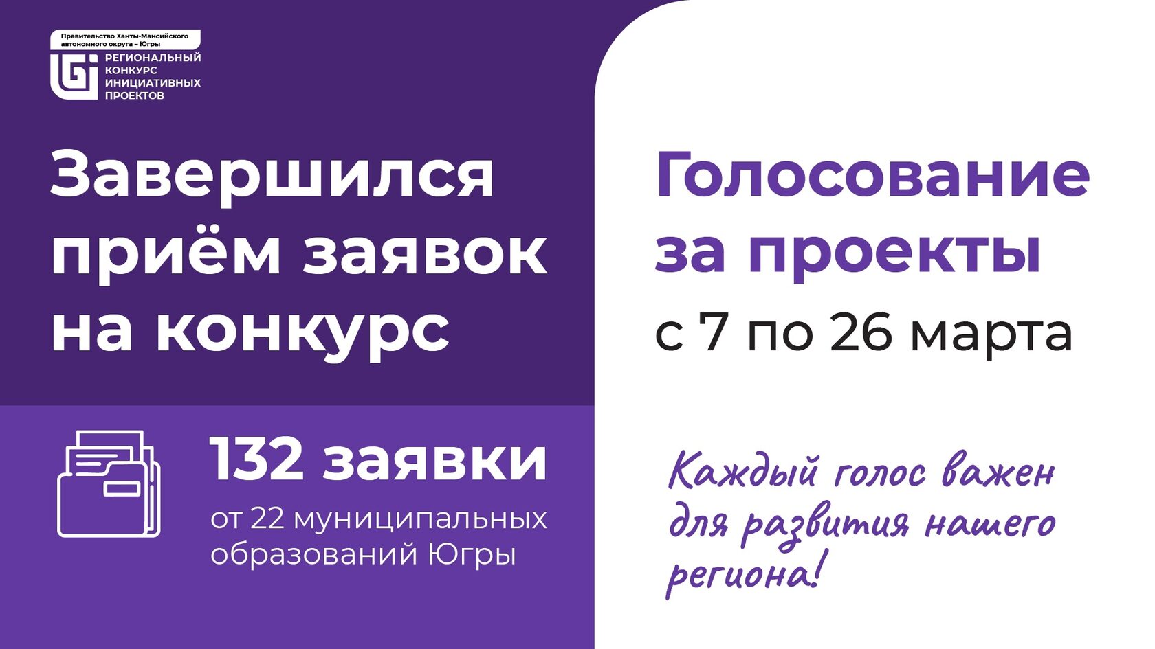 Всего на конкурс поступило 132 заявки от 22 муниципальных образований Югры. Специалисты Центра инициативного бюджетирования уже приступили к проверке проектов на соответствие условиям конкурса.